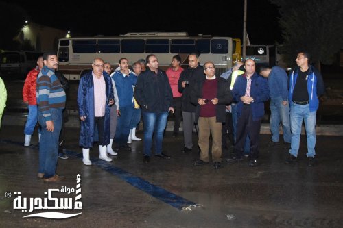 هذا وبدأت الجولة بتفقد أعمال التطهير بجميع المناطق التي تم رصد تجمع لمياه الأمطار بها خلال الأيام الماضية وأثناء النوة، حيث تم تفقد أعمال التطهير التي تتم بمنطقة الكيلو ٢١ و الشوارع الجانبية، ومتابعة إنشاء الشنايش الجديدة بنطاق الحي.