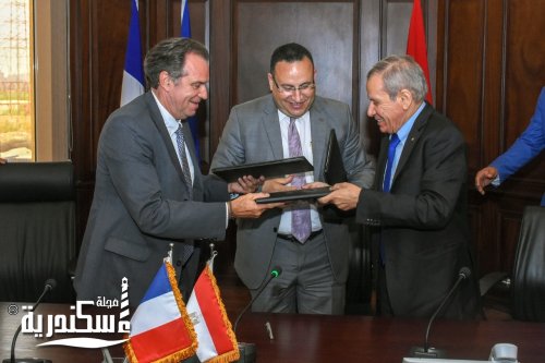 شهد التوقيع؛ السيدة چانينا ايريرا قنصل عام فرنسا باﻹسكندرية، والوفد الفرنسي المرافق، وأ. د. هشام جابر نائب رئيس جامعة الإسكندرية لشئون التعليم والطلاب، وم. أيمن بدوي رئيس الغرفة التجارية والصناعية الفرنسية.