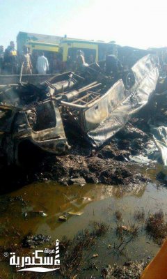 تلقي اللواء / مصطفي النمر مساعد الوزير مدير أمن الإسكندرية إخطاراً من العميد /مدير إدارة الحماية المدنية مفاده إشتعال النيران في أتوبيس نهاية كوبري الالماني الطريق الدولي الساحلي المتجه الي الاسكندرية دائرة قسم محرم بك أثر إنقلاب الاتوبيس نتيجه خطأ لم يثبت بعد قد يكون من السائق أو خطأ نجم عن تهور قائد سيارة اخري مما تسبب فى محاولة سائق الاتوبيس تفادي وقوع اصطدام.