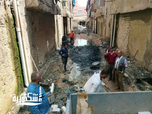 حيث تم مواصلة تسليك المطابق والغرف وبناء غرف تفتيش جديده وتركيب وصيانة المواسير الخاصة بالمنور وتسوية ورفع المخلفات بواسطه لودر الحى وجاري إستكمال العمل.