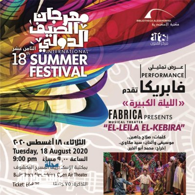يقدم مركز الفنون التابع لقطاع التواصل الثقافي بمكتبة الإسكندرية عرضًا تمثيليًا غنائيًا لفرقة فابريكا، تقدم فيه الفرقة رؤية جديدة لعرض العرائس الشهير "الليلة الكبيرة" بتوقيع المخرج: محمد أبو الخير، وذلك في التاسعة مساء الثلاثاء 18 أغسطس على المسرح المكشوف بمكتبة الإسكندرية، ضمن فعاليات مهرجان الصيف الثامن عشر. جدير بالذكر أن فابريكا تأسست عام 2011 وتكونت من عدد من مطربي وعازفي الأوبرا، ومن أعمالها أوبرا الناي السحري لموتسارت و مسرحية البؤساء بالعامية المصرية، بالإضافة لعدد من العروض الناجحة قامت فيها الفرقة بإعادة توزيع أعمال كبار الموسيقيين العرب.