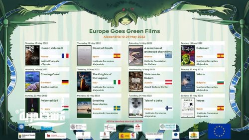 بمناسبة الاحتفالات الثقافية بشهر الاتحاد الأوروبي، تشارك سفارة إسبانيا ومعهد ثربانتس بالإسكندرية في برنامج "أفلام أوروبا الخضراء"، ويشمل عرض اثني عشر عملا تتناول قضايا البيئة والاستدامة البيئية. وتستضيف البرنامج مدينة الإسكندرية في الفترة بين الـ 10 والـ 29 مايو، بمشاركة كلا من النمسا وبلغاريا وفنلندا وفرنسا وألمانيا واليونان والمجر وإيطاليا وإسبانيا وفنلندا والسويد.