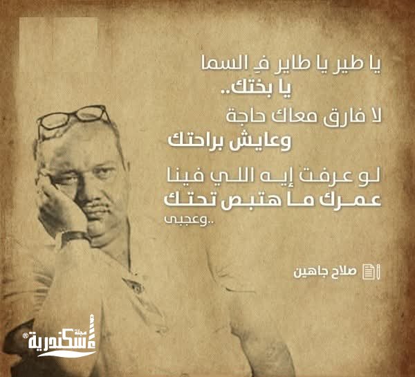 يذكر أن صلاح جاهين يعد من علامات الإبداع المصرى ، شاعر ورسام كاريكاتير وسيناريست ولد عام 1930 ، إلتحق بكلية الفنون الجميلة ثم تركها ليلتحق بكلية الحقوق بدأت شهرته كرسام كاريكاتير فى مجلة روز اليوسف ، صباح الخير ثم جريدة الأهرام قمة أعماله كانت الرباعيات التي تجاوز مبيعات إحدي طبعاتها 125 ألف نسخة ، كتب أشعاراً تحولت إلي أغاني ثورية يرددها الشعب وبلغت قصائده ما يزيد عن 161 ، كما قدم العديد من الأعمال المسرحية منها أوبريت الليلة الكبيرة إلى جانب عدد من أهم الأعمال السينمائية ، توفى في 21 إبريل 1986 تاركاً مئات الأغنيات والأشعار ورسوم الكاريكاتير.